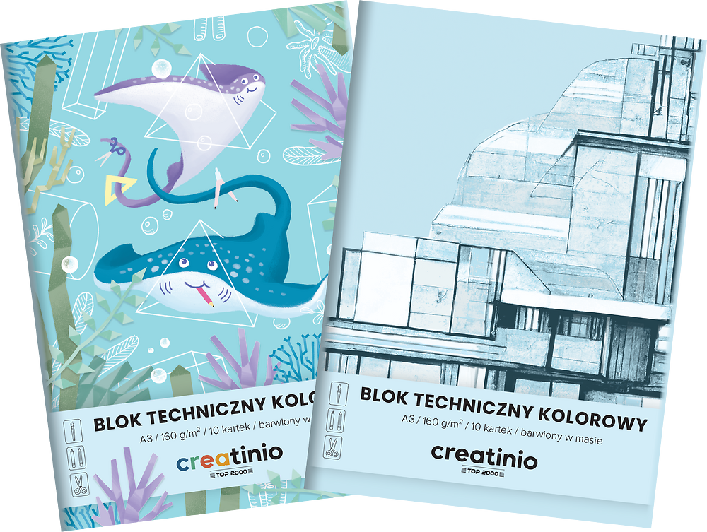 Bloki techniczne Creatinio są doskonałe do różnego rodzaju prac plastycznych. Gładki, biały papier jest odporny na częste ścieranie gumką. Dzięki temu błędy i zmiany koncepcji można dowolnie poprawiać, bez obniżania estetyki pracy. Okładki bloków zostały zaprojektowane tak, aby młodsi i starsi uczniowie mogli wybrać coś odpowiedniego dla siebie.