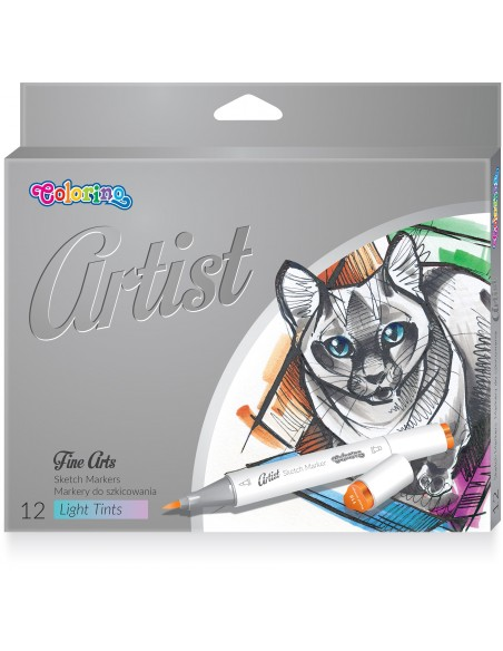 Pastelowa edycja wysokiej jakości markerów do szkicowania z dwoma końcówkami: w kształcie pędzelka do wykonywania miękkich i łagodnych linii oraz szerokiej, ściętej końcówki przeznaczonej do kolorowania większych powierzchni.