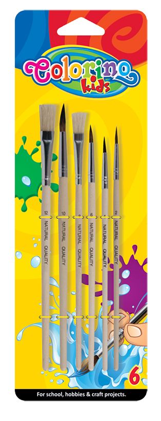 W zestawie dwa pędzle płaskie i cztery okrągłe