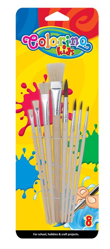 W zestawie cztery pędzle płaskie i cztery okrągłe