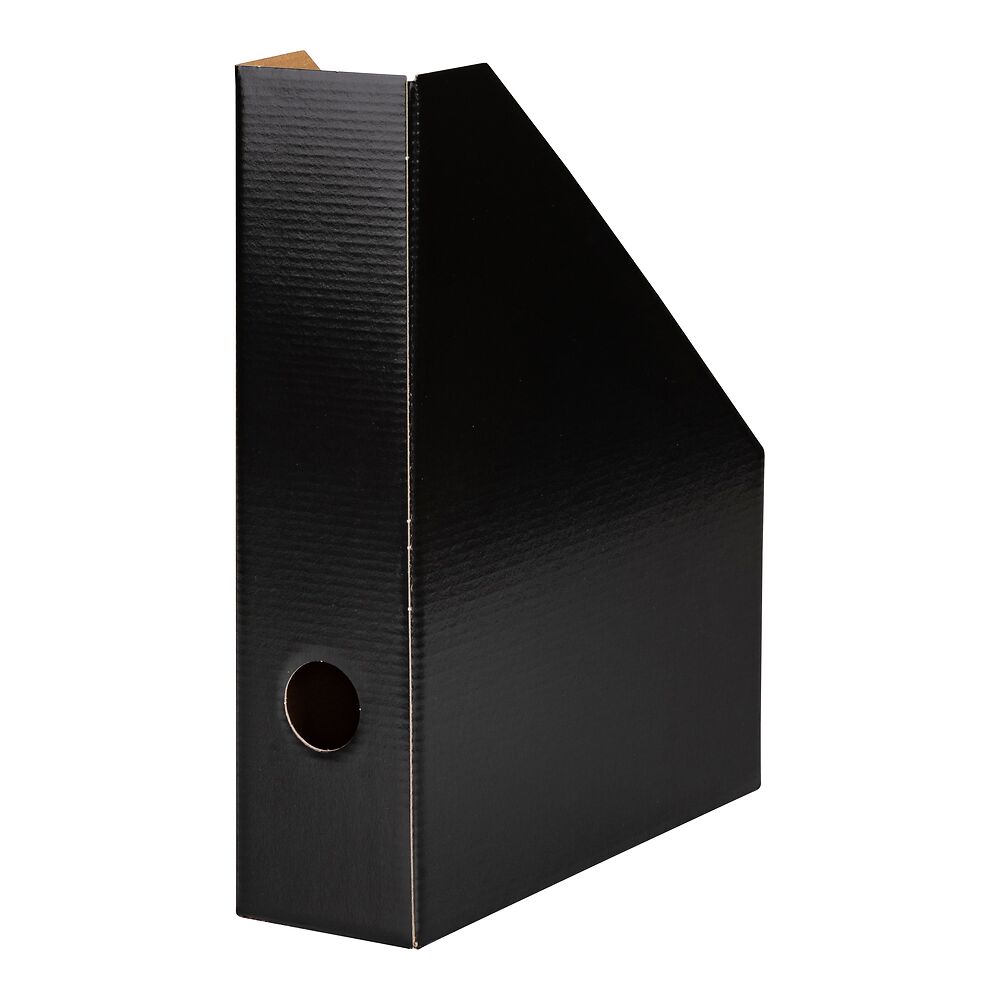 Pojemnik na czasopisma wykonany z lakierowanego kartonu. Otwór na palec umożliwia łatwe zdjemowanie pojemnika z półki. Prosty kształt umożliwia dopasowanie pojemnika do wielu mebli i ustawienie kilku pojemników przylegająco do siebie.