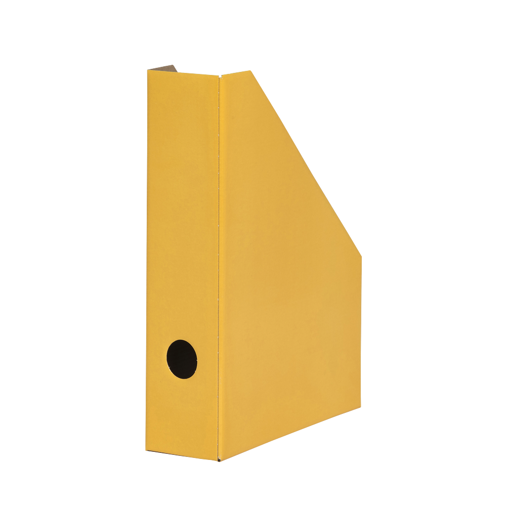 Pojemnik na czasopisma wykonany z lakierowanego kartonu. Otwór na palec umożliwia łatwe zdjemowanie pojemnika z półki. Prosty kształt umożliwia dopasowanie pojemnika do wielu mebli i ustawienie kilku pojemników przylegająco do siebie.